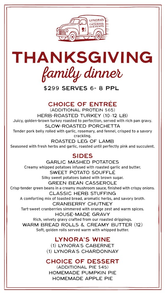 Place your order: Call (561) 345-2089 or Email Catering@lynoras.com