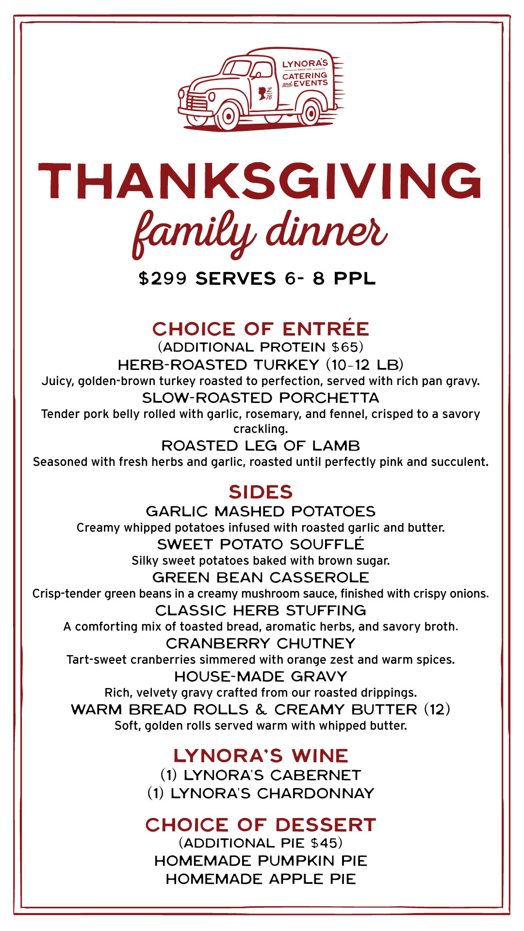 Place your order: Call (561) 345-2089 or Email Catering@lynoras.com